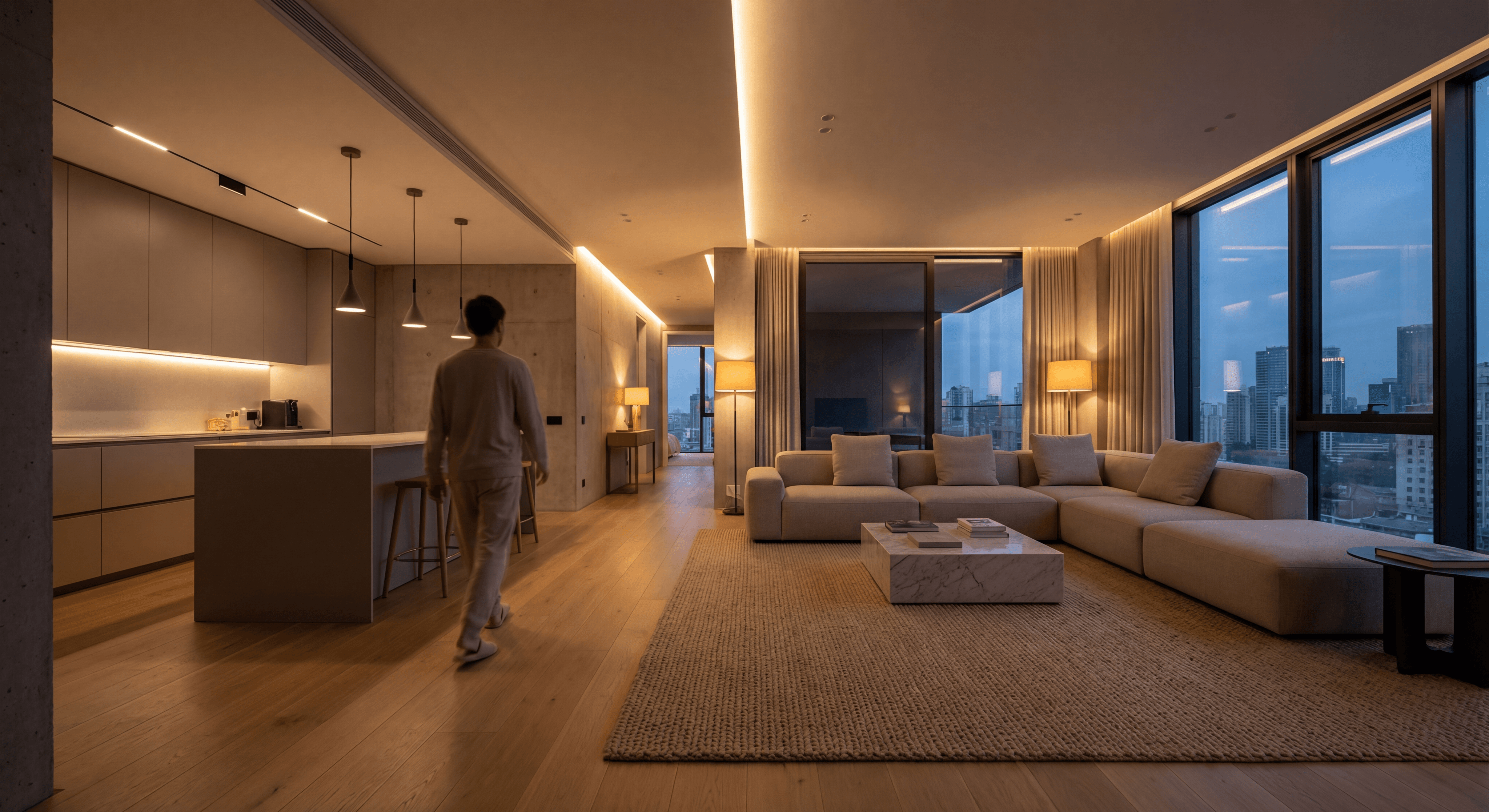 Забудьте о выключателях: свет будет следовать за вами. Система распознает ваше перемещение и автоматически зажигает лампы в тех зонах, где вы находитесь, выключая их в пустых помещениях.